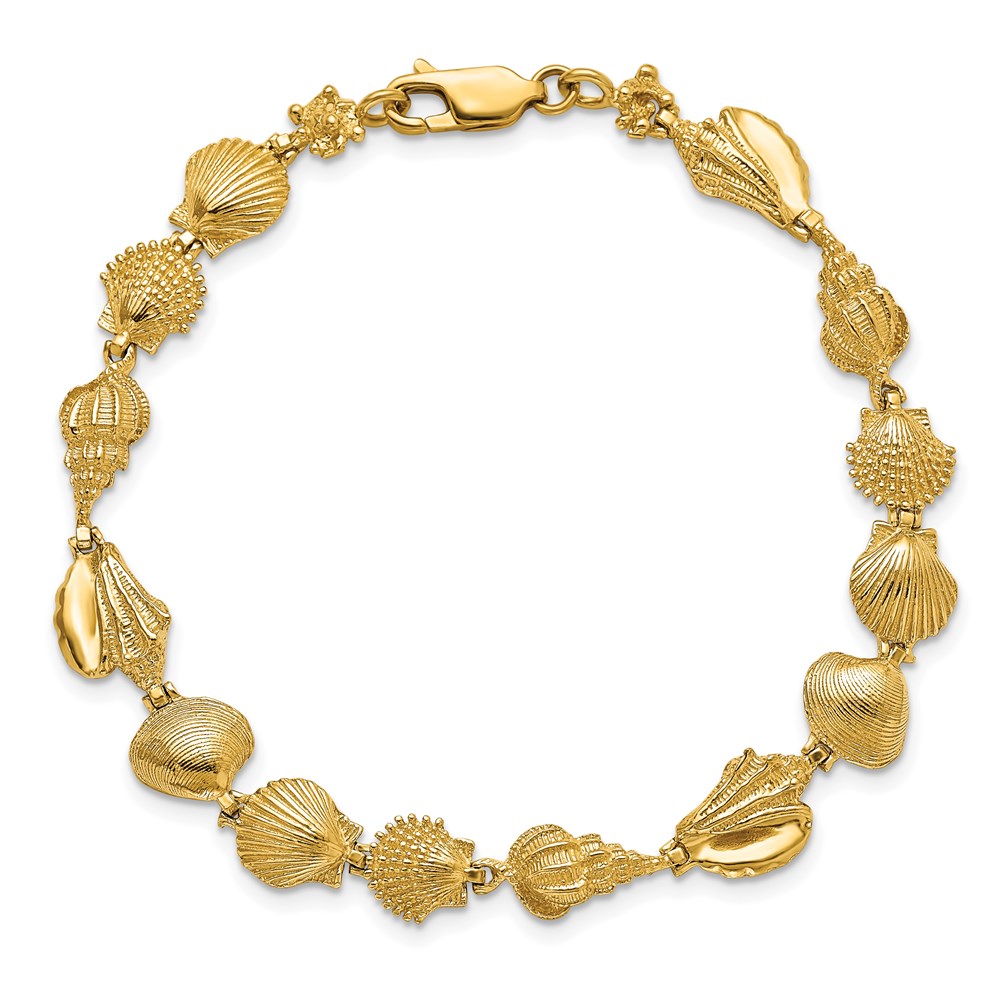 14k Polished Assorted Sea Shells 7.25 inch Bracelet