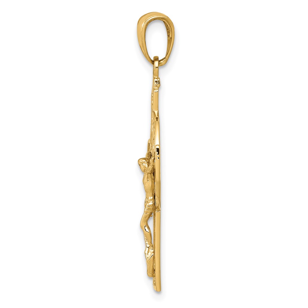 14K Polished and Textured Guardian Angel with Heart Pendant