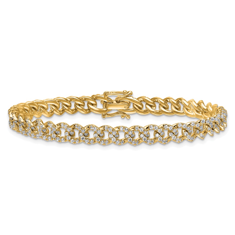14K Polished Complete 2.6 carat Diamond Fancy Curb Link 7 inch Bracelet