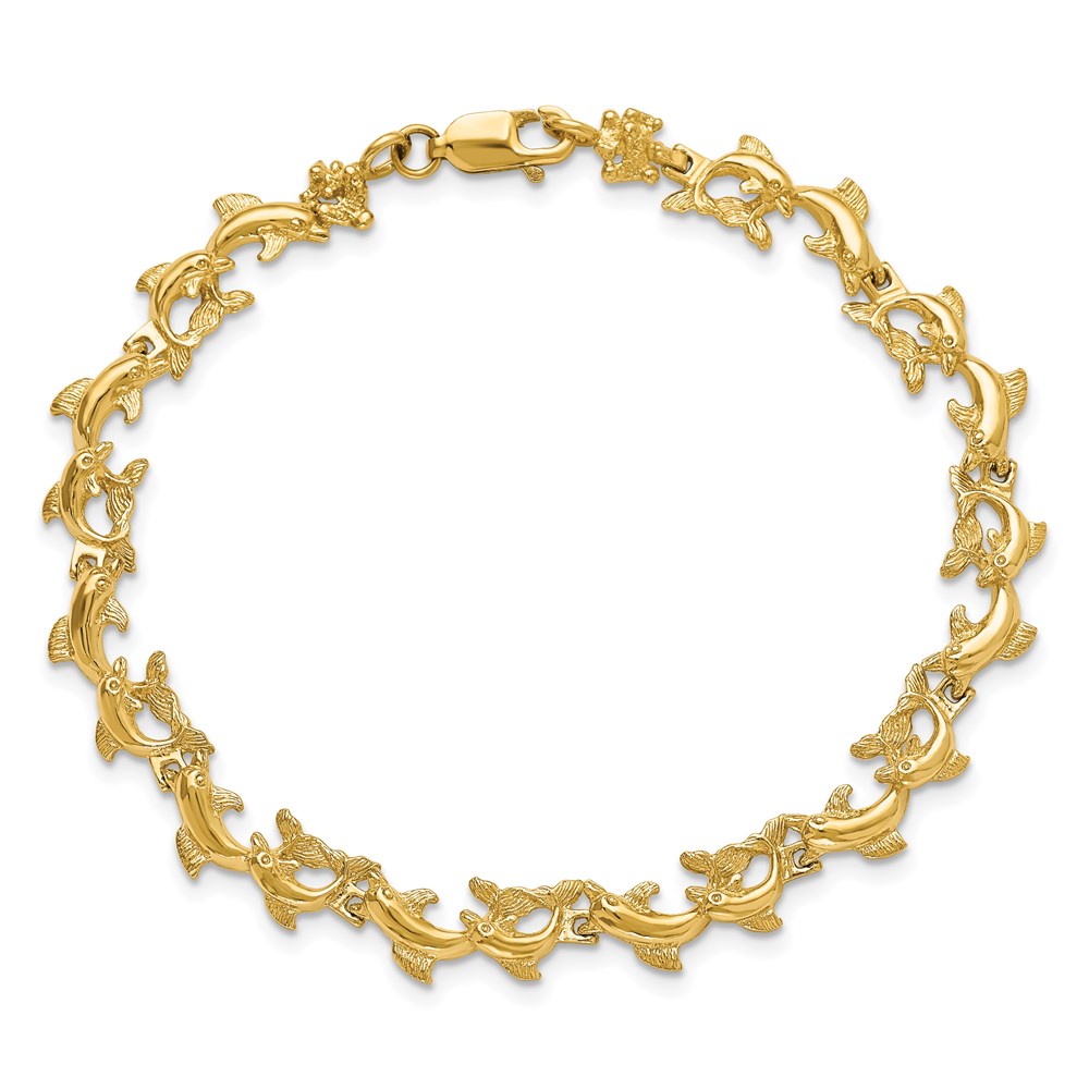14K Polished and Textured Dolphin and Starfish 7.5 inch Bracelet