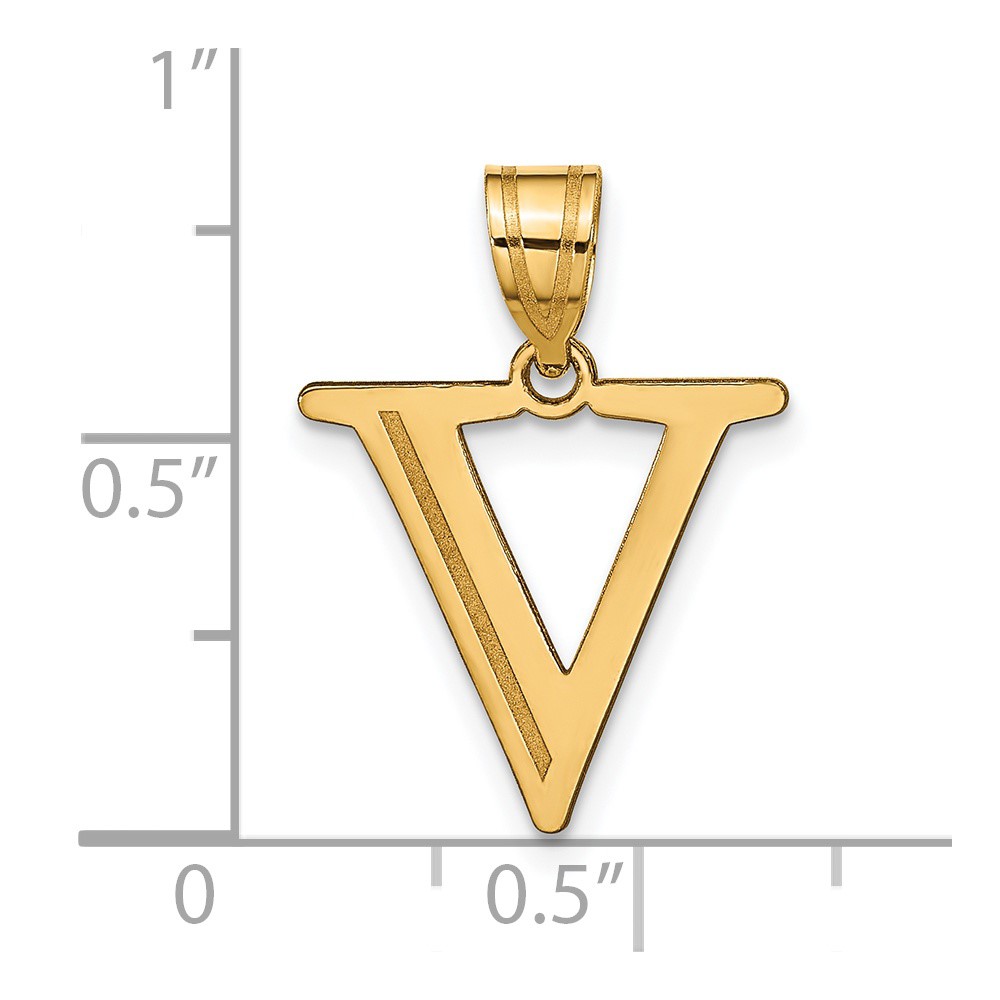 14k Polished Etched Letter V Initial Pendant