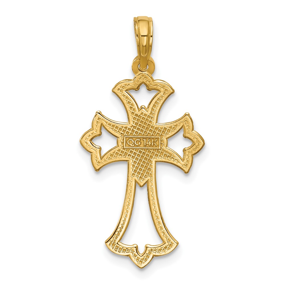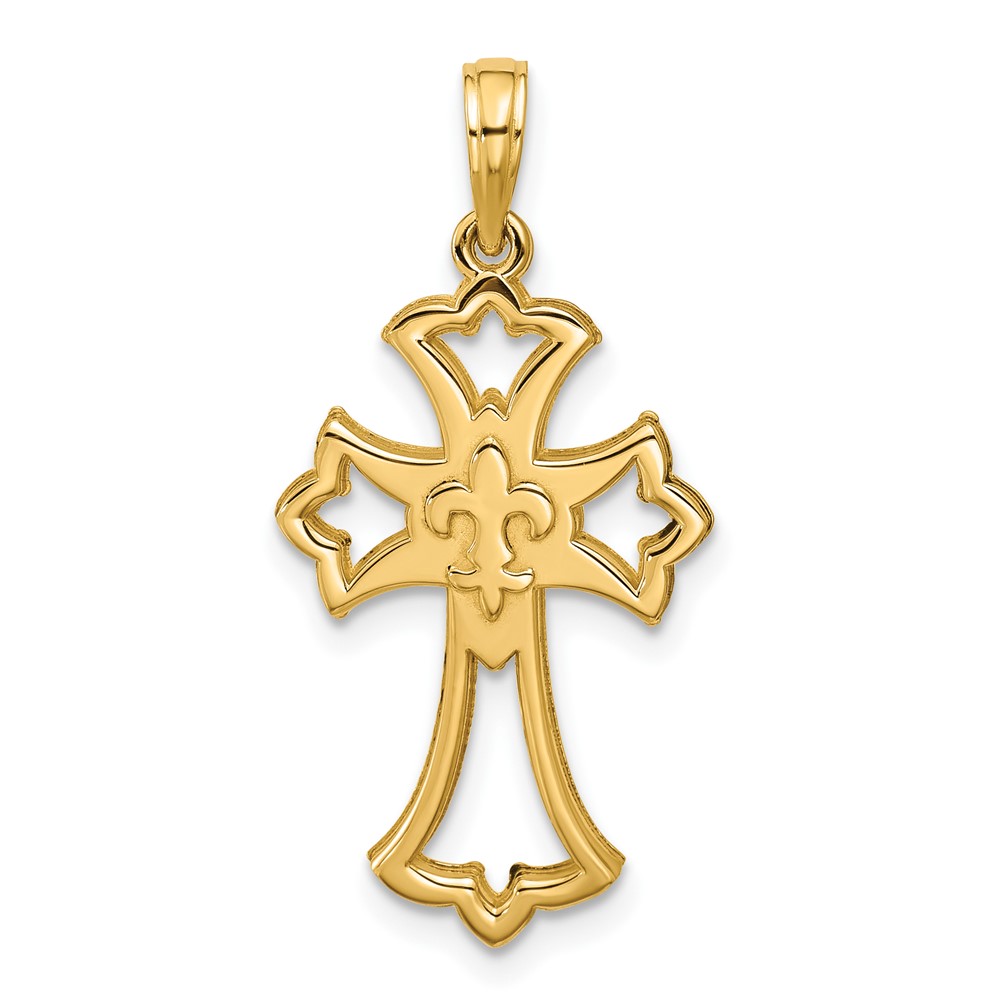 14K Polished Fleur De Lis Cross Pendant