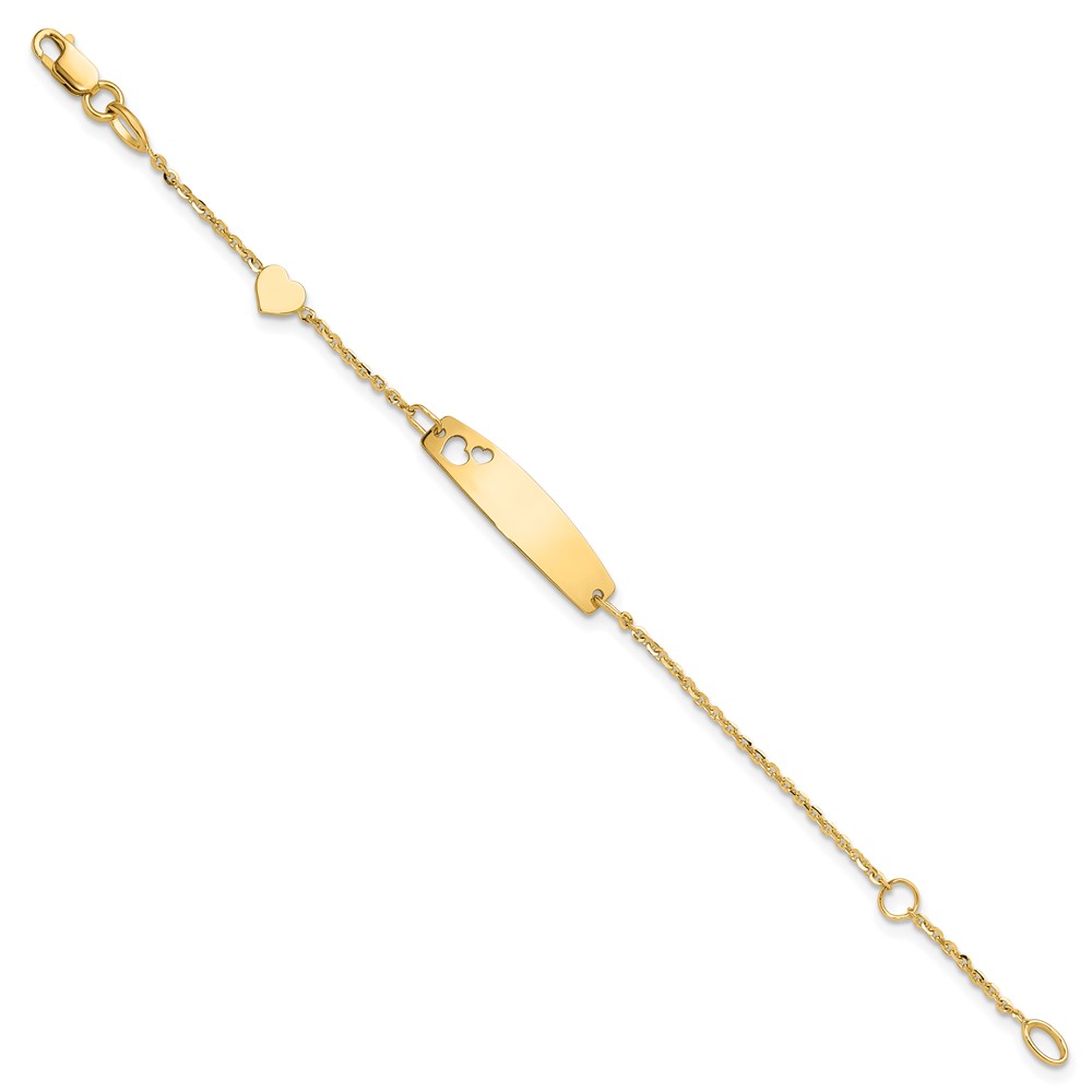 14K Polished Heart and 24x6mm Cut-out Heart Plate 5.5 inch Baby/Child ID Bracelet