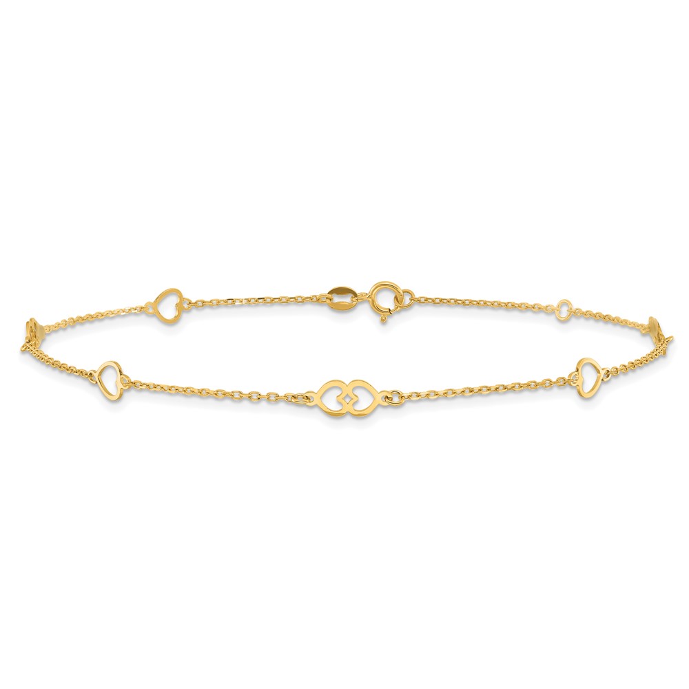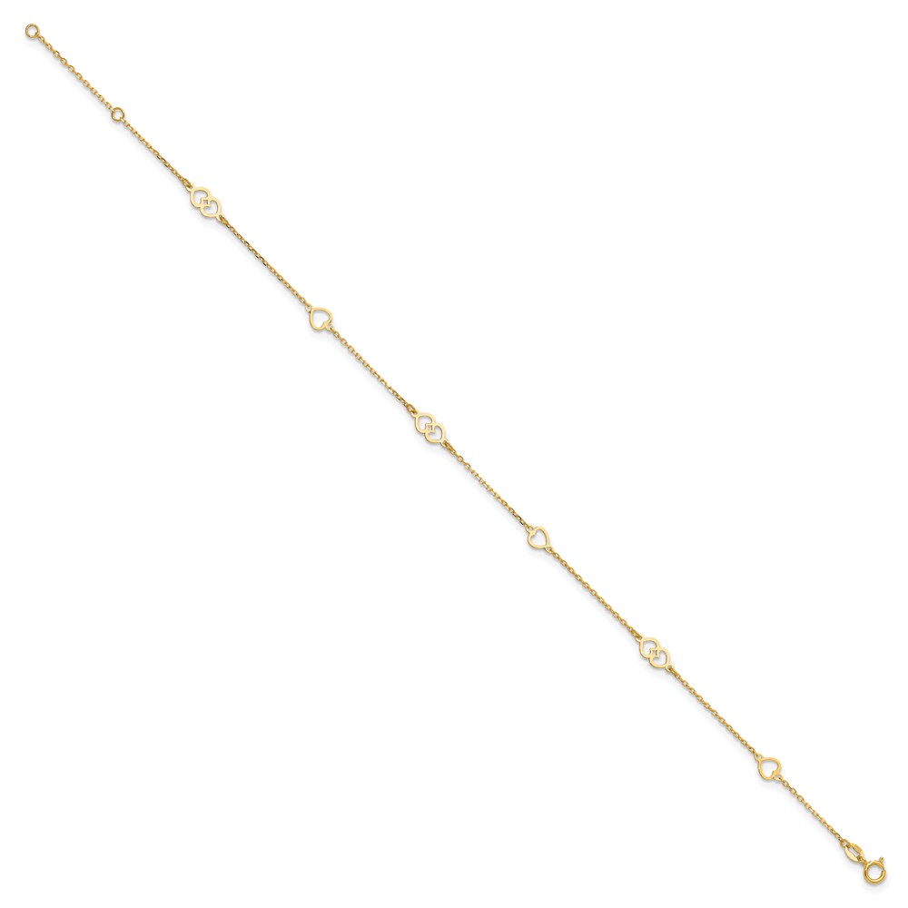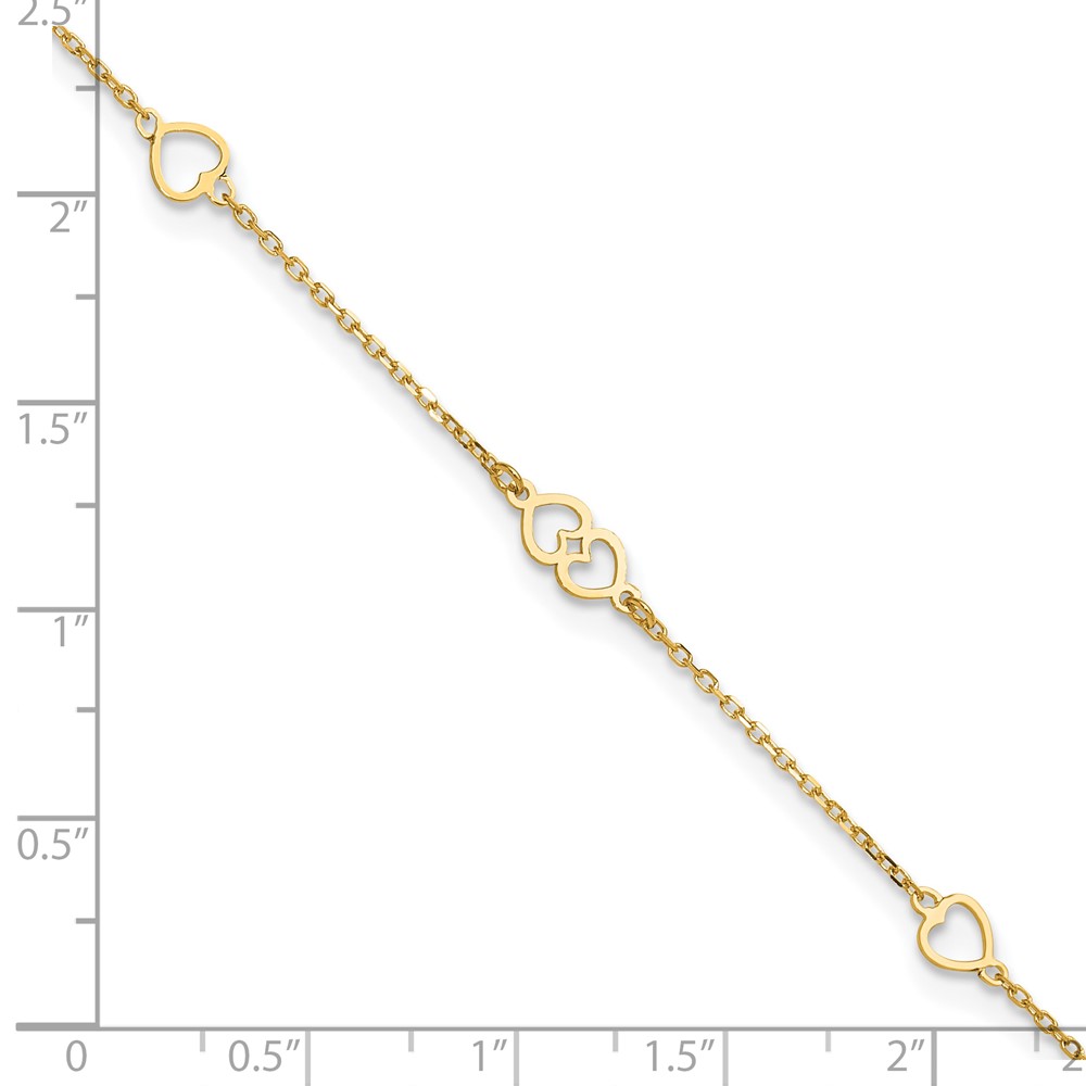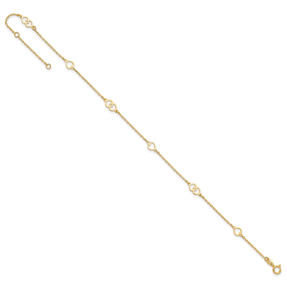 14K Polished Heart-in-Heart Links 3-Station Plus Extender – Total Anklet