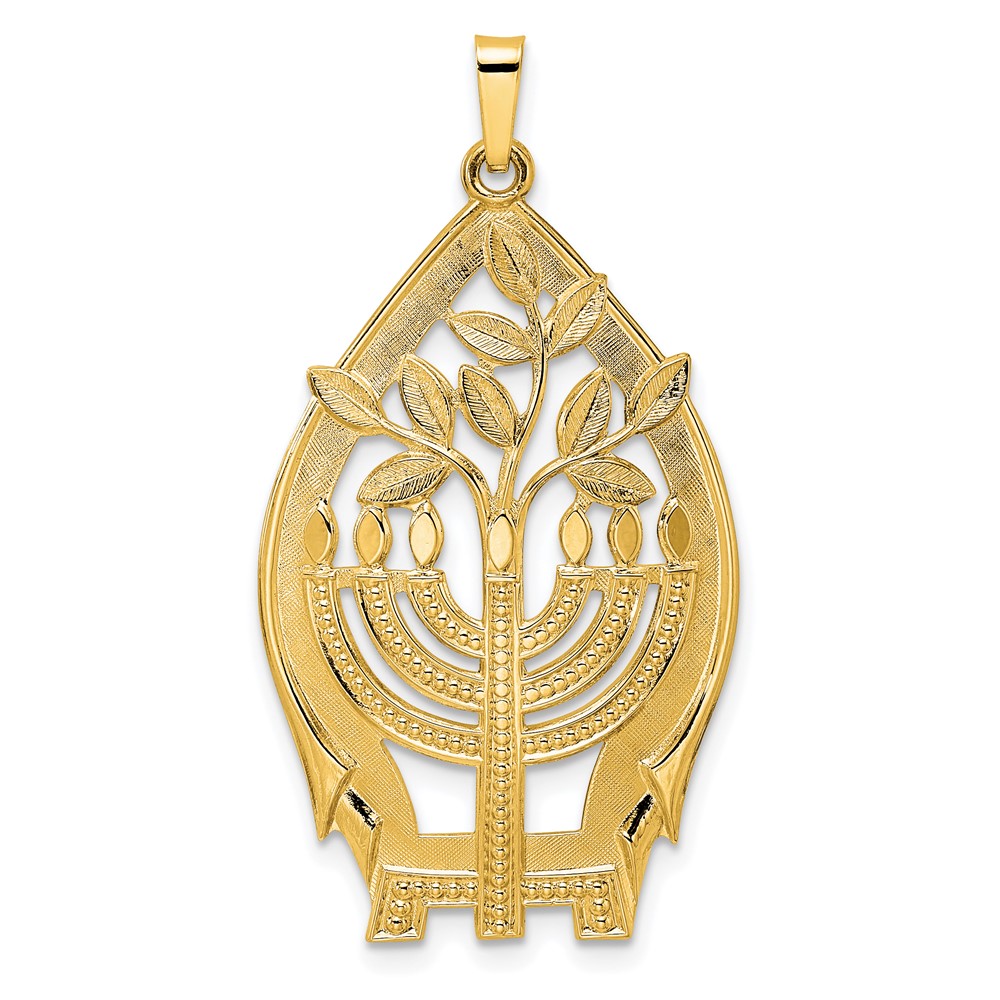 14k Polished Hollow Large Menorah and Tree of Life Pendant