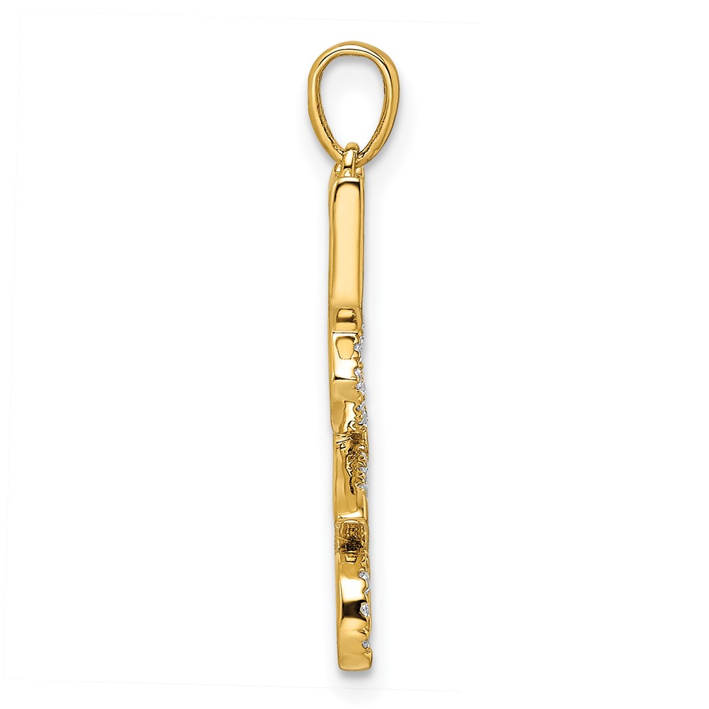 14k Two-tone White and Rose Heartbeat Diamond Heart Pendant
