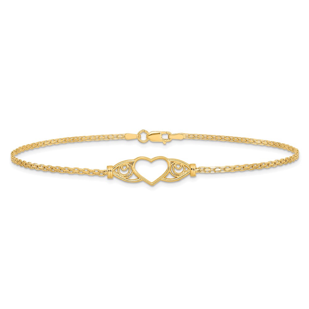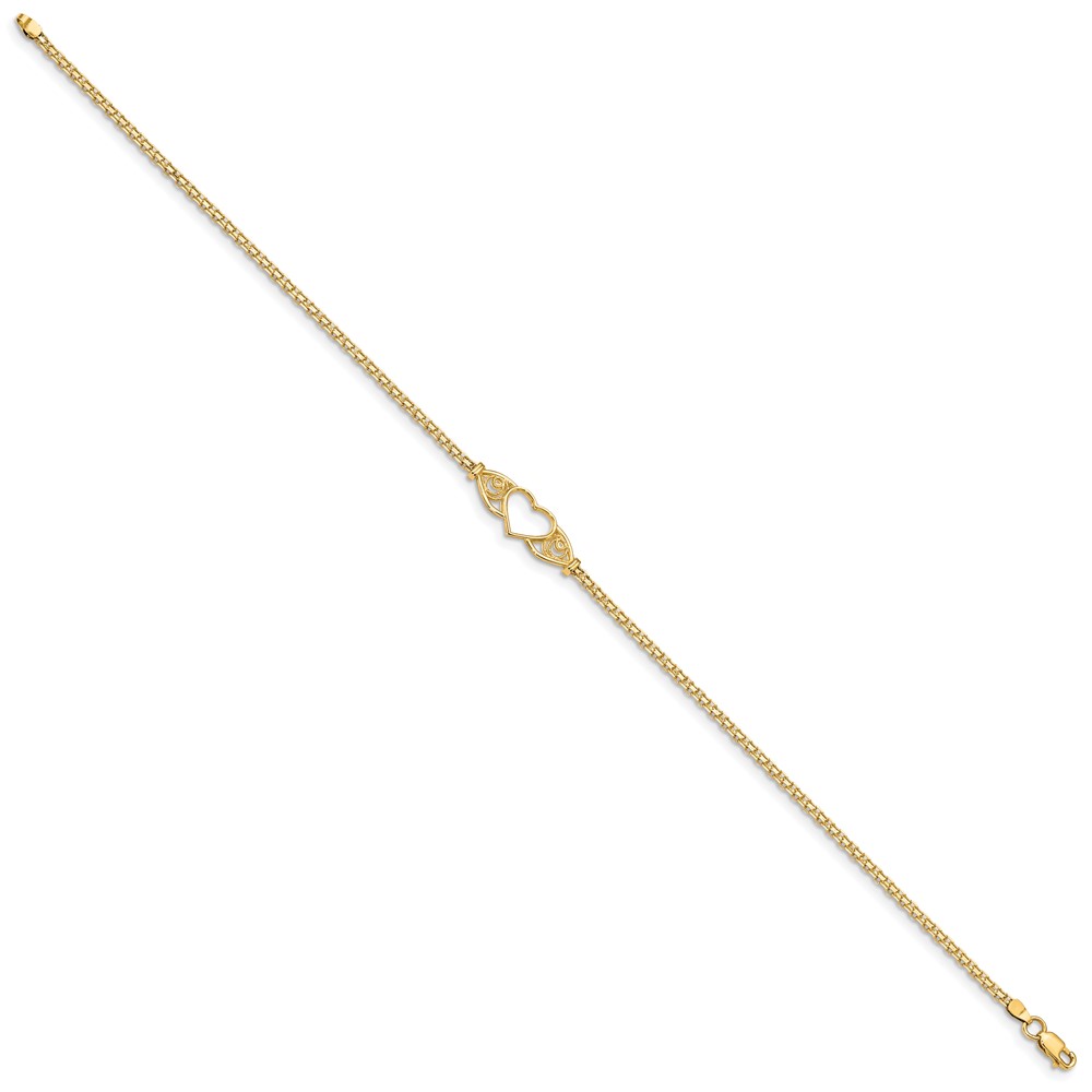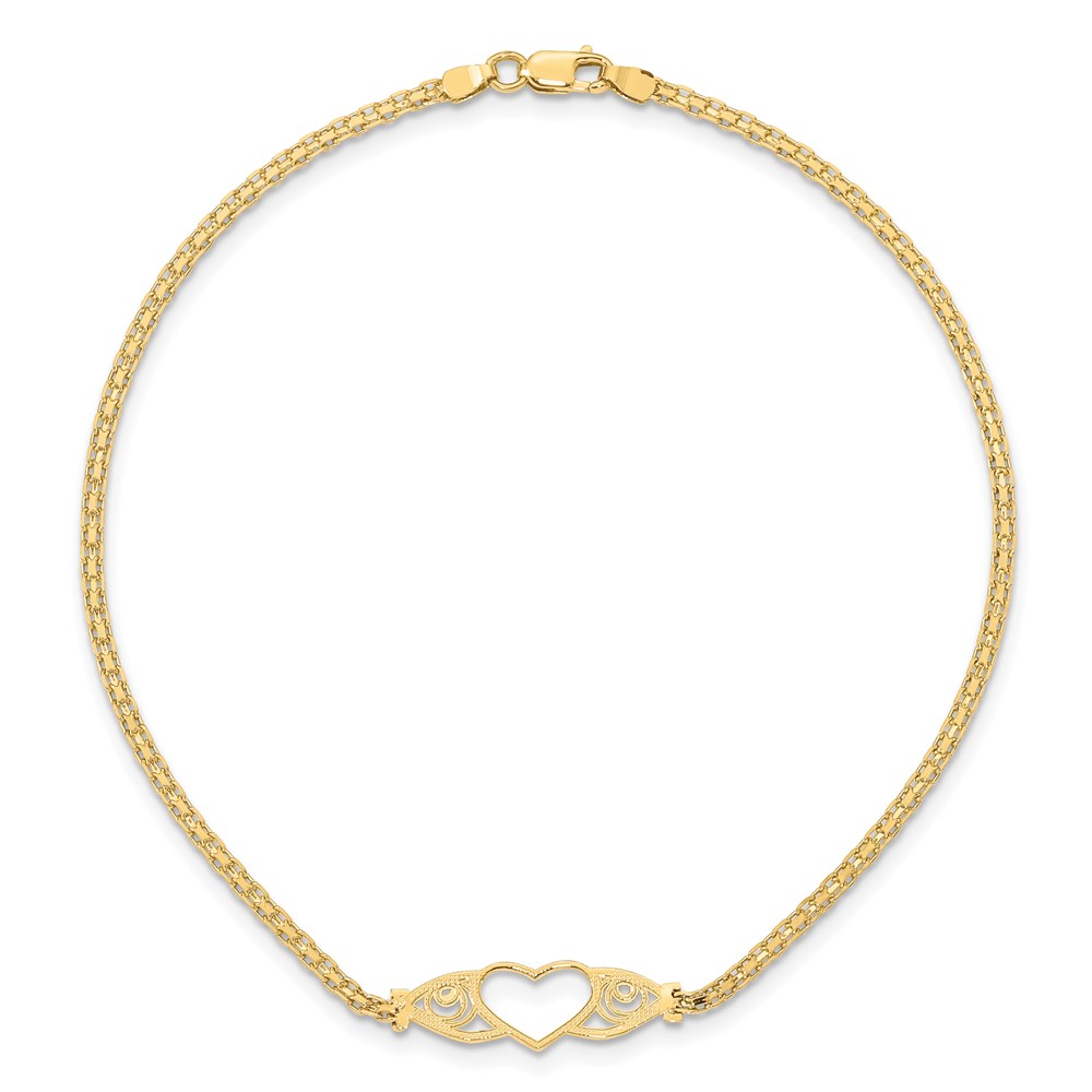 14k Polished Open Heart with Filigree and Bismark Chain Anklet