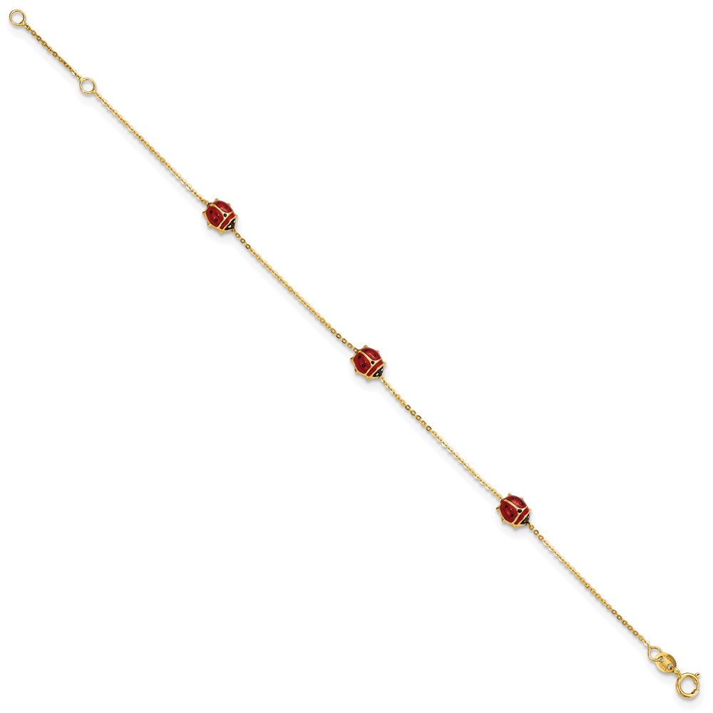 14k Polished Red and Black Enameled Ladybugs 6.5 inch Childrens Bracelet Plus 0.75 inch Extender