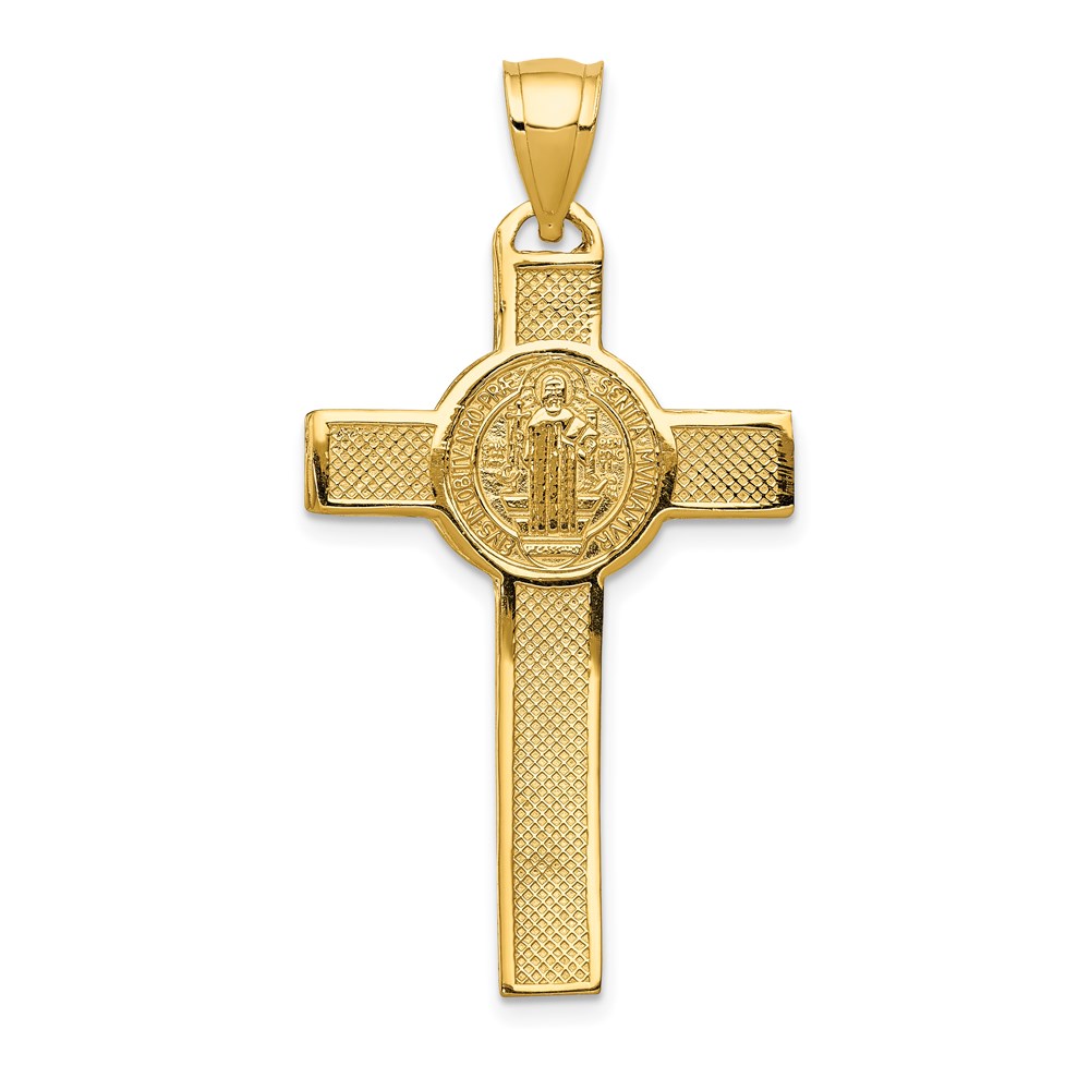 14k Polished San Benito Solid 2-Sided Crucifix Pendant