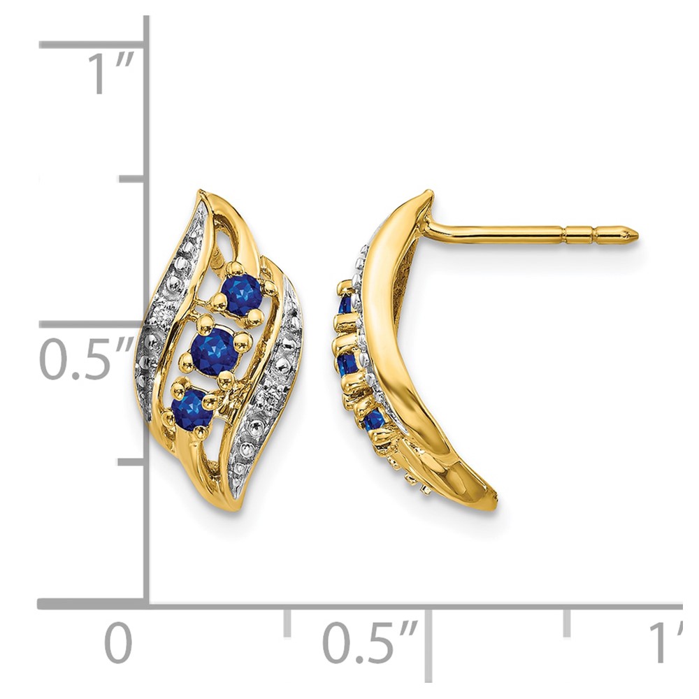 14k Polished Sapphire and Diamond Curve Post Earrings