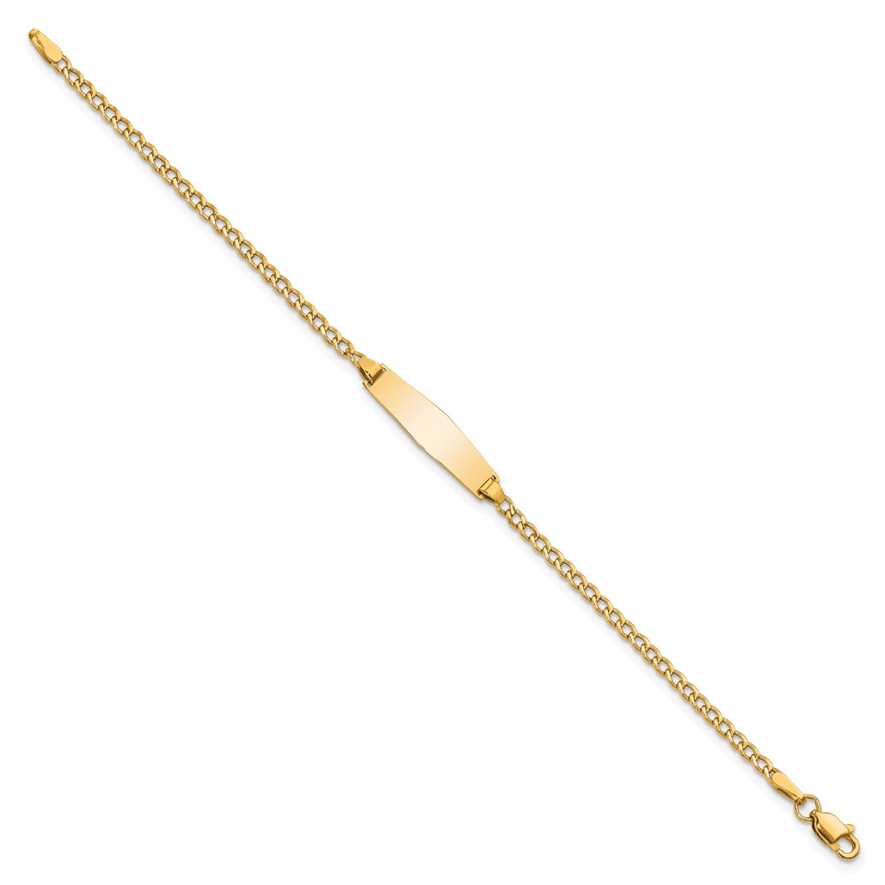 14k Polished Semi-Solid Chain/Solid Plate Cuban Link Soft Diamond Shape 19.5×5.5mm Plate 5.5 inch Baby/Child ID Bracelet