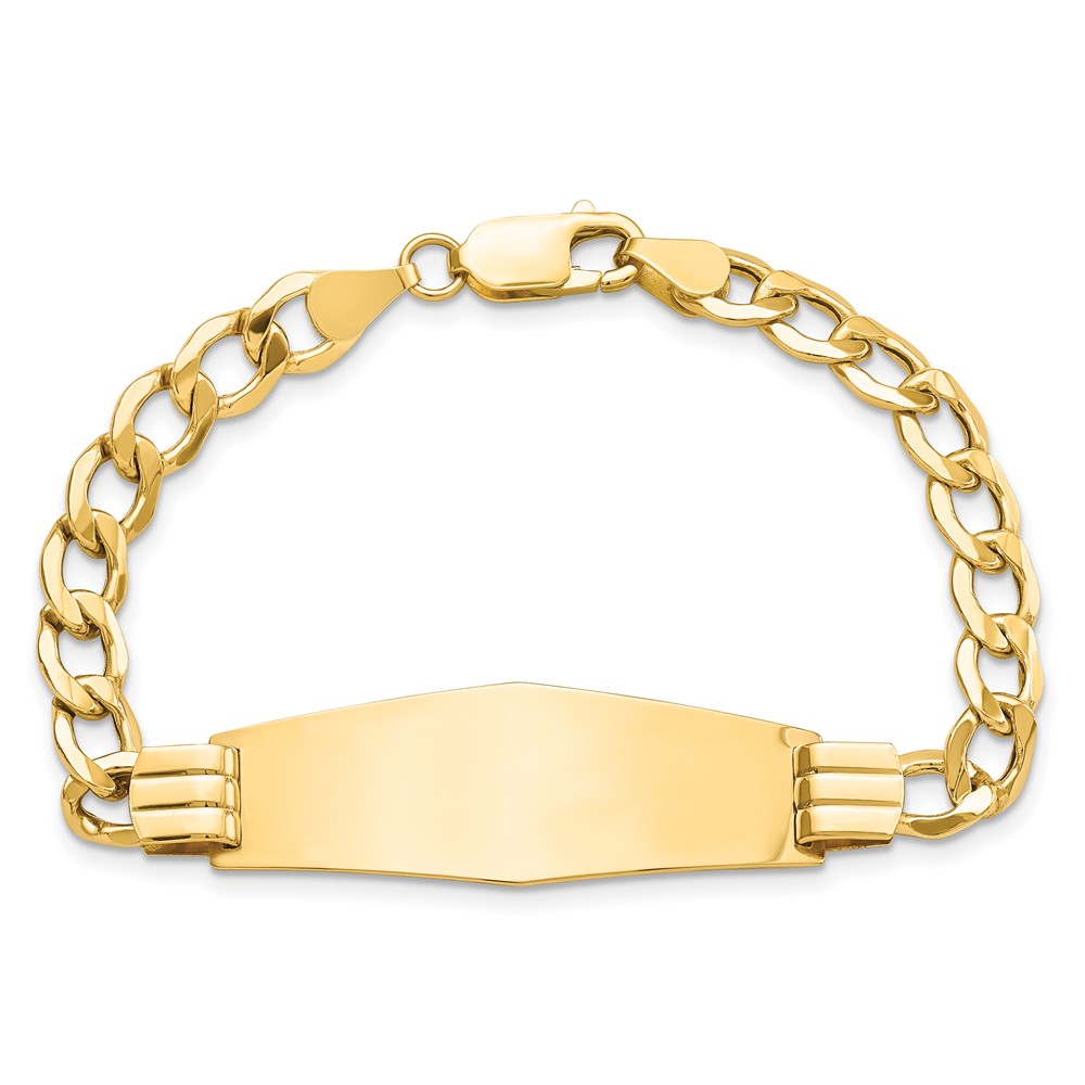 14k Polished Semi-Solid Chain/Solid Plate Curb Link Soft Diamond Shape 39x14mm Plate 8 inch ID Bracelet