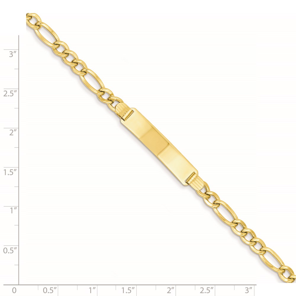14k Polished Semi-Solid Chain/Solid Plate Figaro Link 33.5×6.5mm Plate 7 inch ID Bracelet