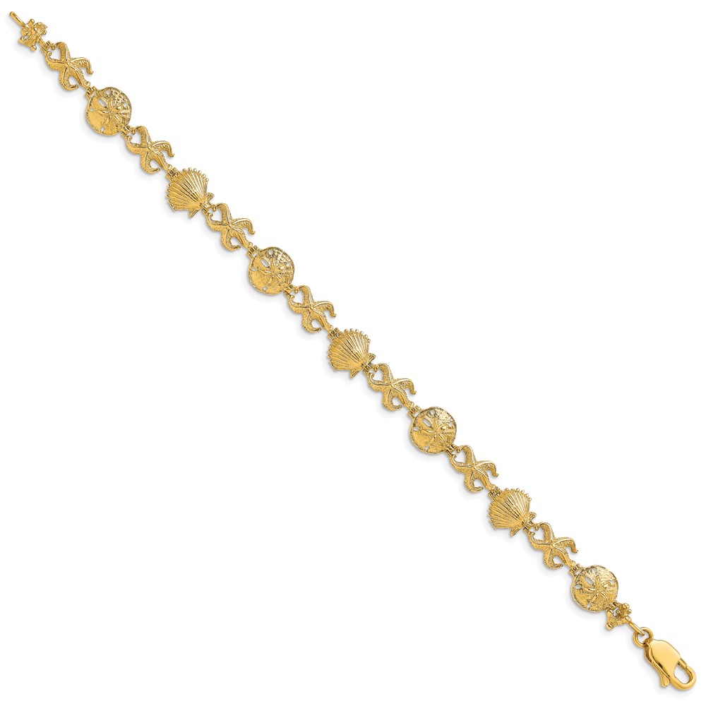 14K Polished Sand Dollar/Clam Shell/Starfish 7.25 inch Bracelet