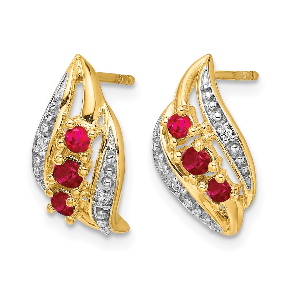 14k Polished Siam Ruby and Diamond Curve Post Earrings