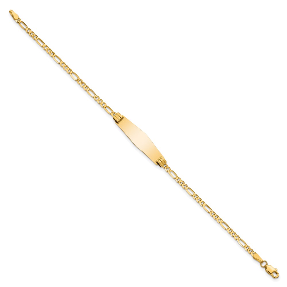 14k Polished Solid Chain/Solid Plate Figaro Link Soft Diamond Shape 24.5×7.3mm Plate 8 inch ID Bracelet
