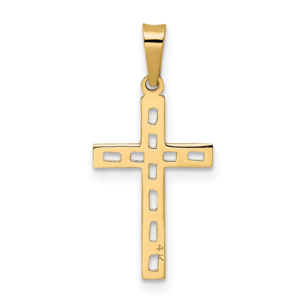 14k Two-tone Polished Hollow INRI Budded Crucifix Pendant