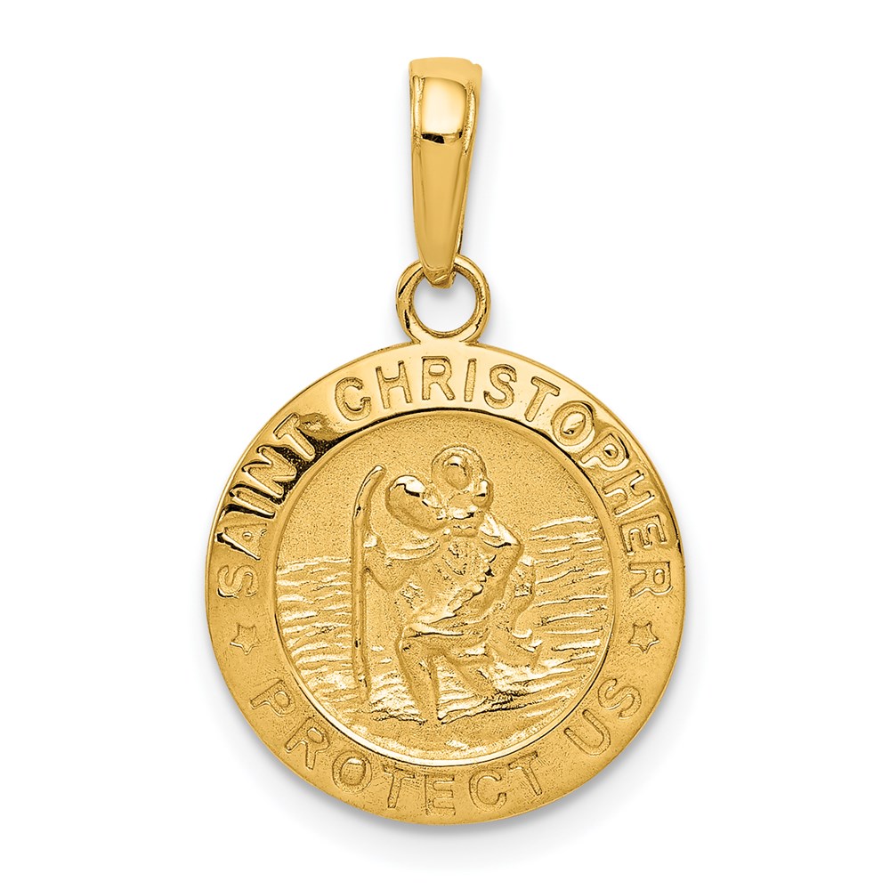 14k White Gold Polished Solid Saint Christopher Medal Charm