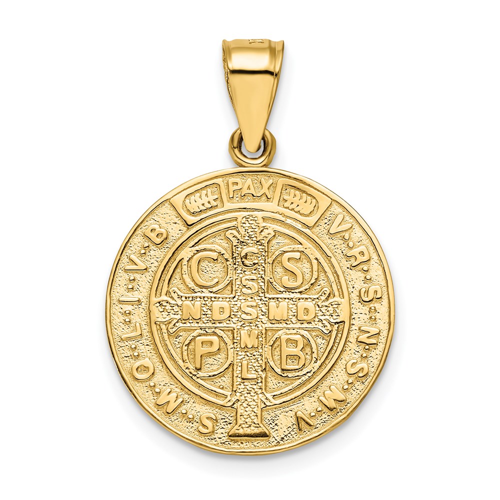 14k Polished and Satin Solid Round Reversible St. Benedict Medal Pendant
