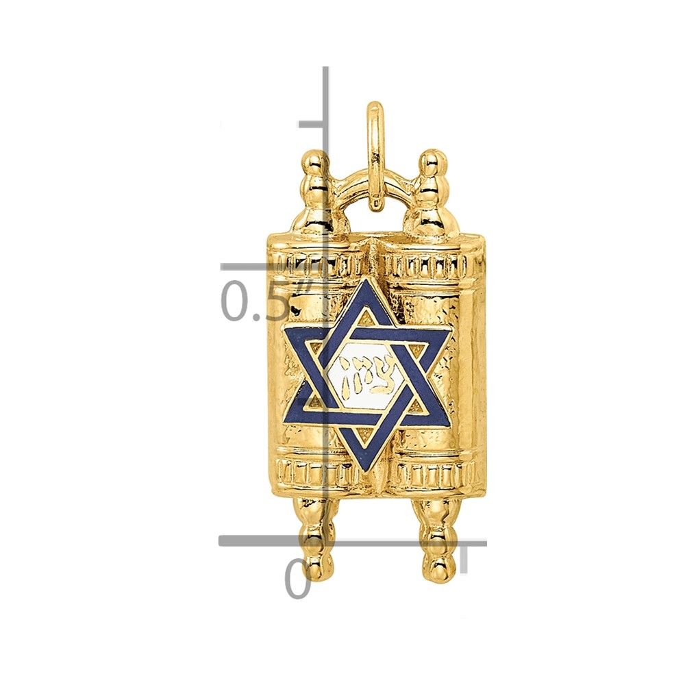 14k Polished Solid Torah with Blue and White Enameled Star of David Pendant