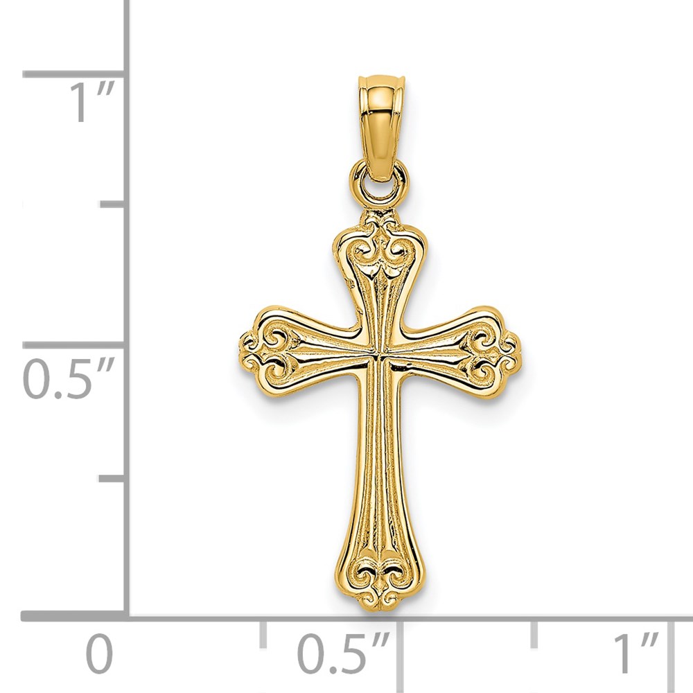 14K Polished Textured Cross Charm