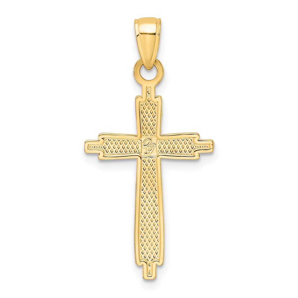 14K Polished and Textured Pointed Ends Fancy Cross Pendant