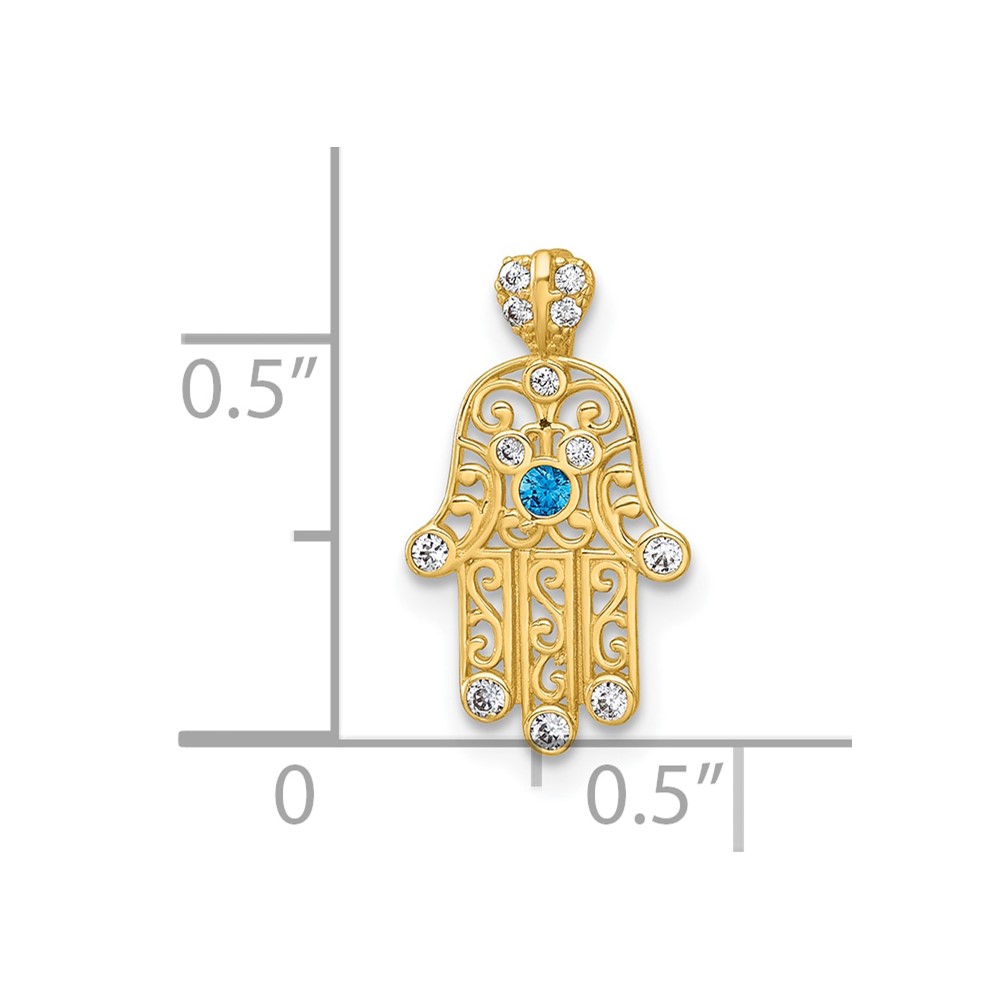 14k Polished White and Blue CZ Hamsa Chain Slide Pendant