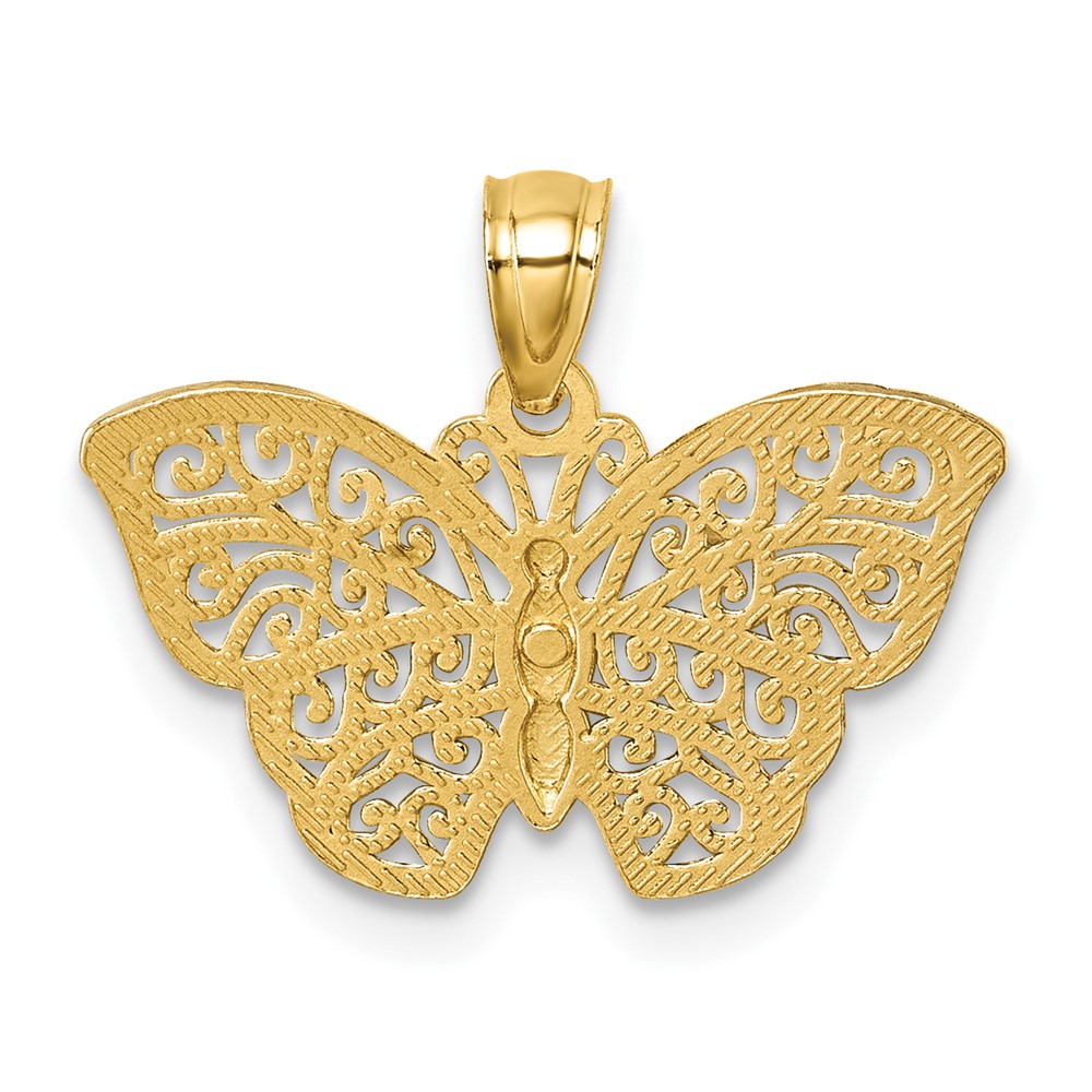 14k Polished with Rhodium Diamond-cut Filigree Butterfly Pendant