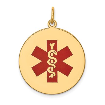 14K Red Enameled Textured Back Caduceus Medical Disc Charm