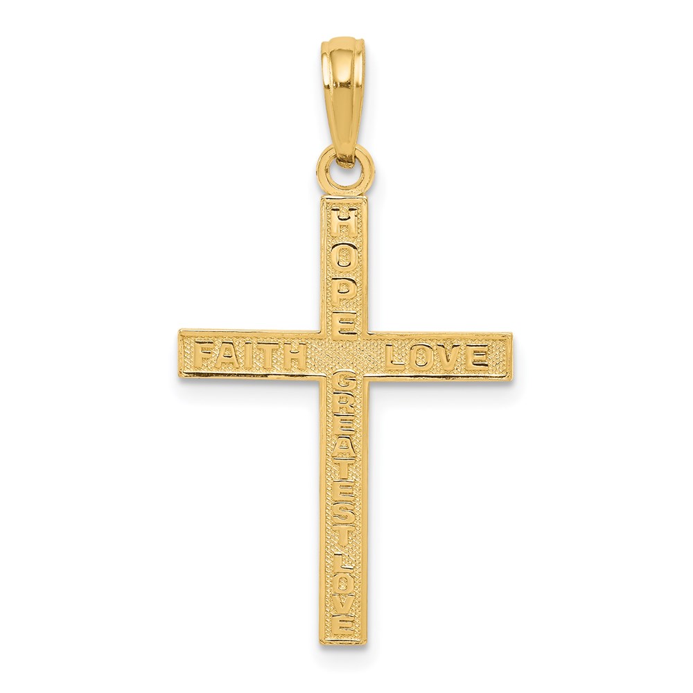 14K Reversible FAITH HOPE LOVE GREATEST LOVE Cross Pendant