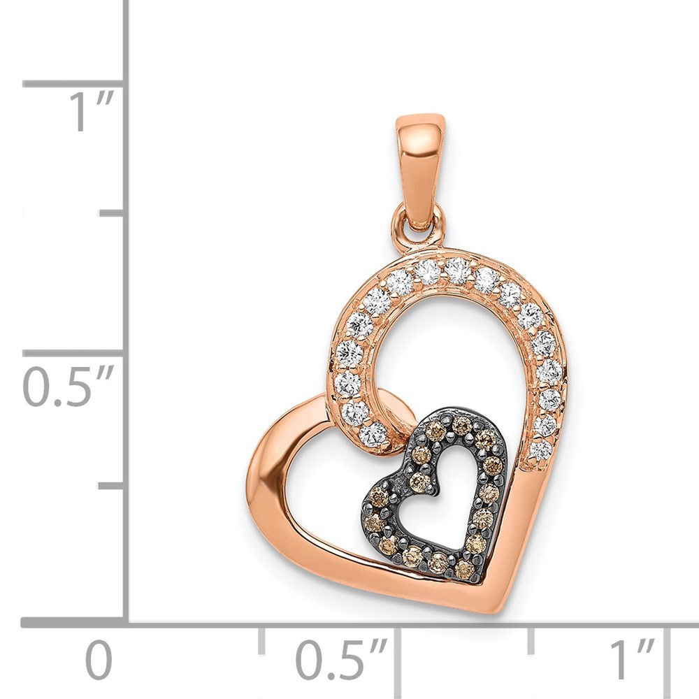 14k Rose Gold and Black Rhodium Champagne and White Diamond Hearts Pendant