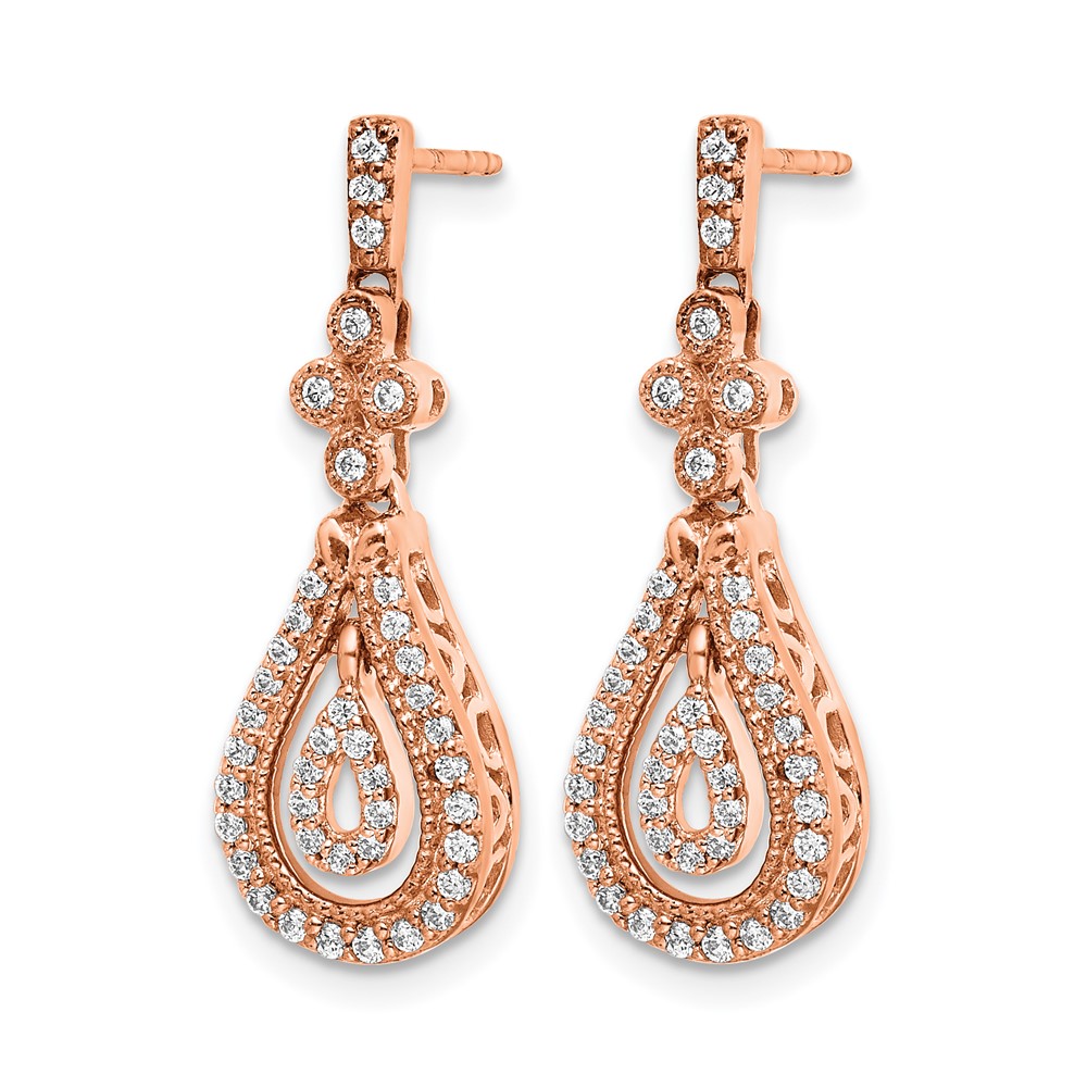 14k Rose Gold Polished 3/8 carat Diamond Teardrop Dangle Post Earrings