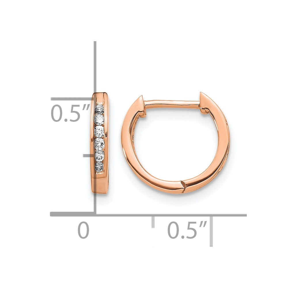 14k Rose Gold Polished Diamond Hinged Hoop Earrings
