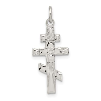 14k Satin Diamond-cut Eastern Orthodox Cross Pendant