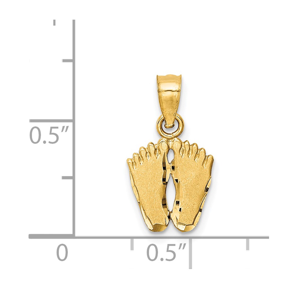 14k Satin Diamond-cut Footprints Pendant