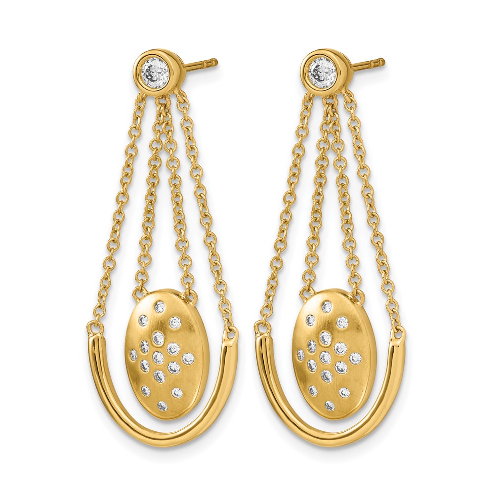 14k Satin/Polished 1/3 carat Diamond Oval with Chain Dangle Post Earrings