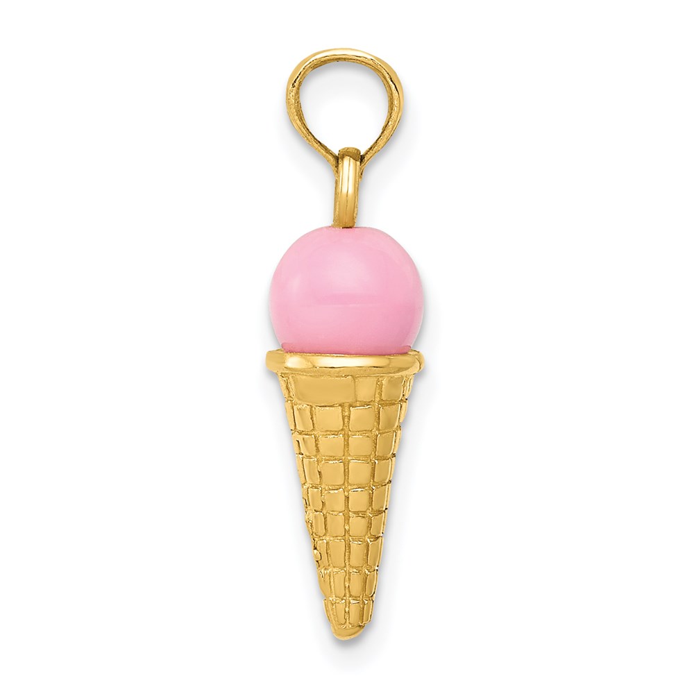 14K Satin Polished 3-D Pink Quartz Bead Ice Cream Cone Charm