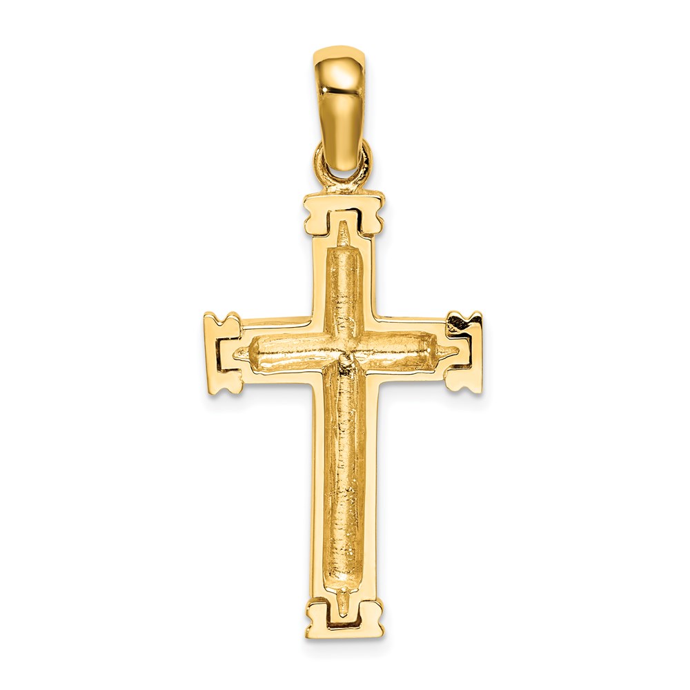 14K and White Rhodium Scroll with Double Endcaps Cross Charm