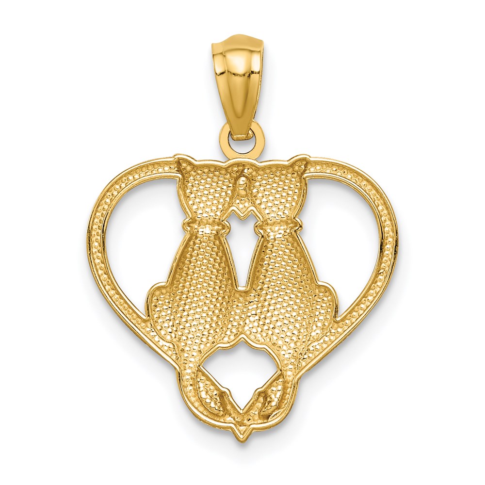 14K Sitting Cats in a Heart Pendant