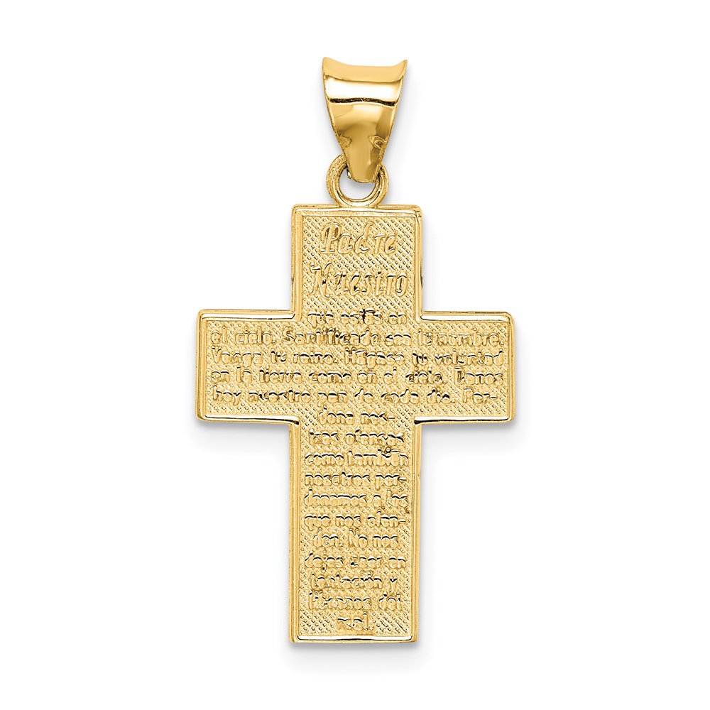 14k Textured Reversible Lord’s Prayer in Spanish Cross Pendant