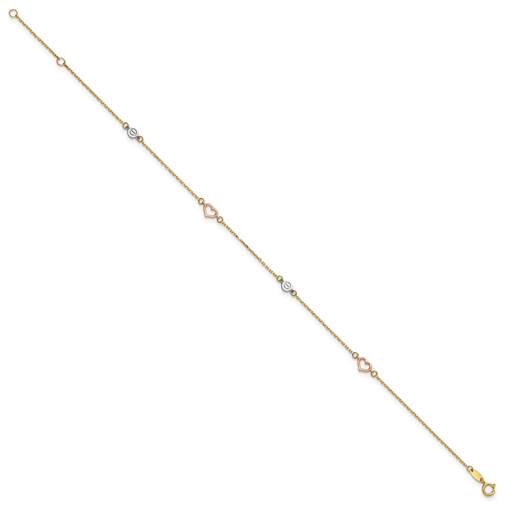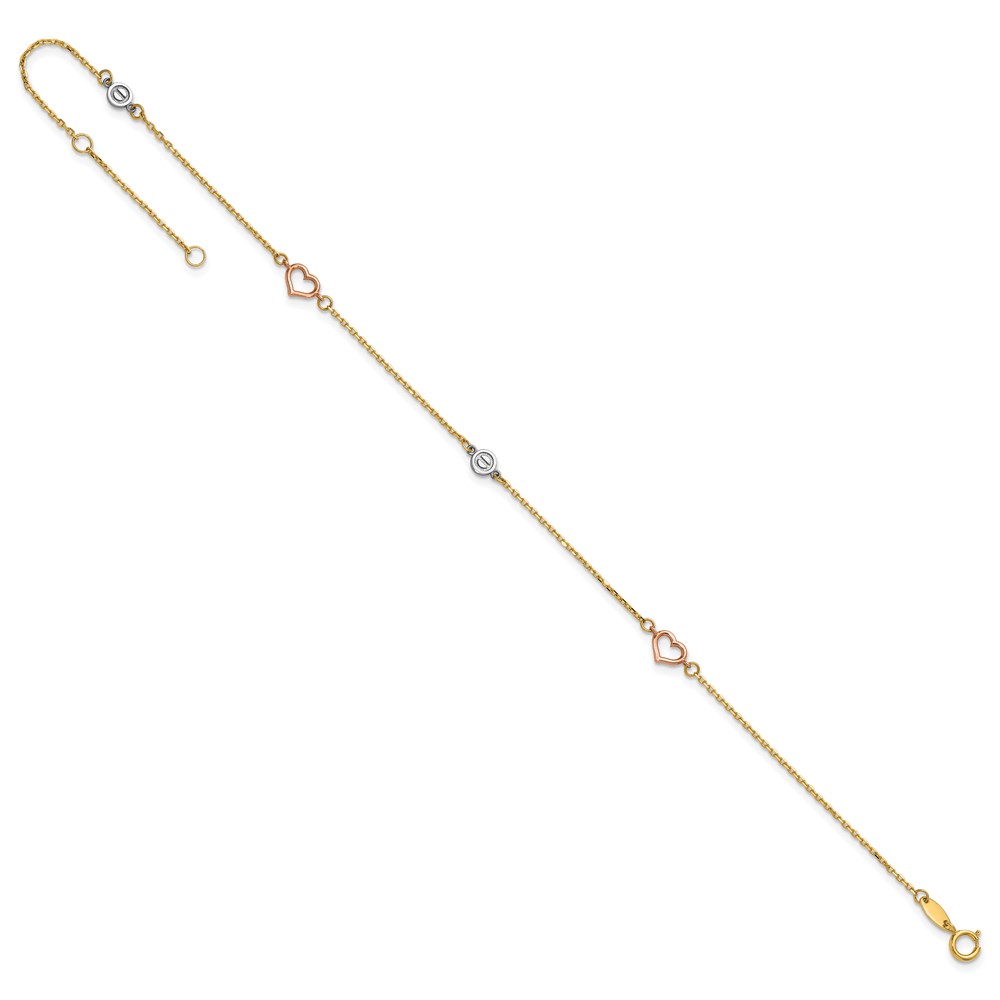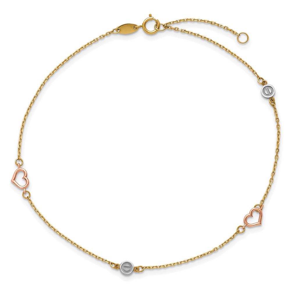14k Tri-color Polished Hearts and Circles Plus Extender – Total Anklet