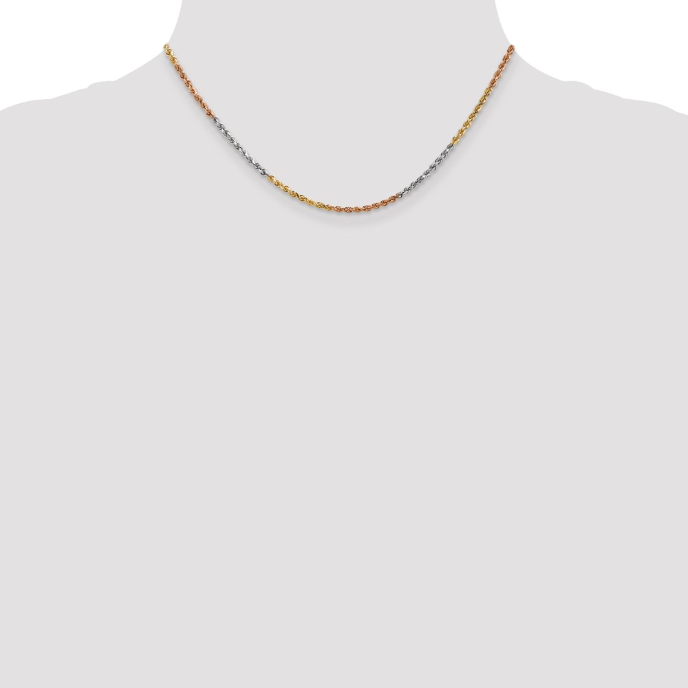 14K Tri-colored 2.5mm Diamond-cut Rope with Lobster Clasp Chain