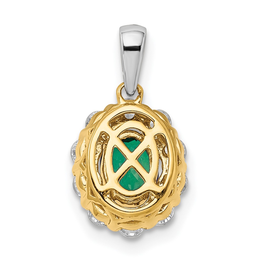 14k Two-Tone 1/2 carat Lab Grown Diamond VS/SI+ G+ and Lab Created Emerald Halo Pendant