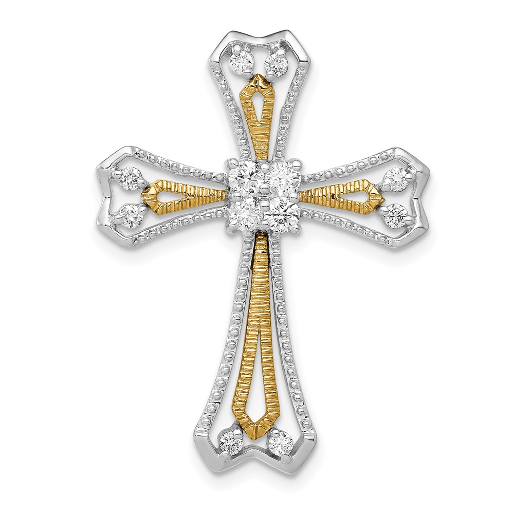 14k Two-Tone 1/3 carat Diamond Cross Chain Slide