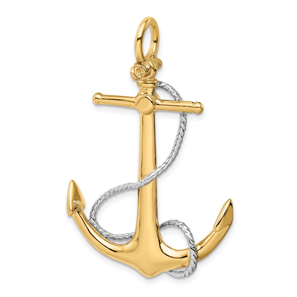 14k Two-tone 3-D Large Anchor with Entwined Rope Accent Pendant
