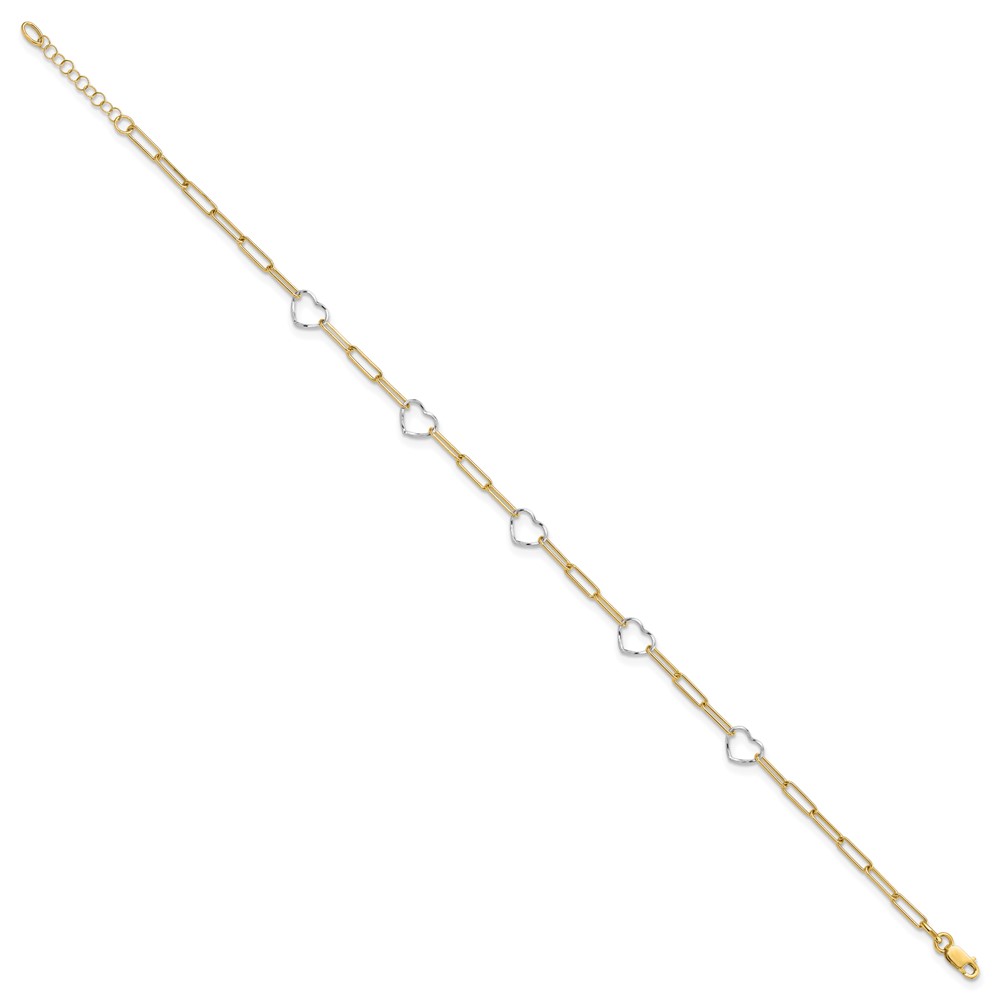 14K Two-tone 5 Hearts and Paperclip Links Plus Extender – Total Anklet
