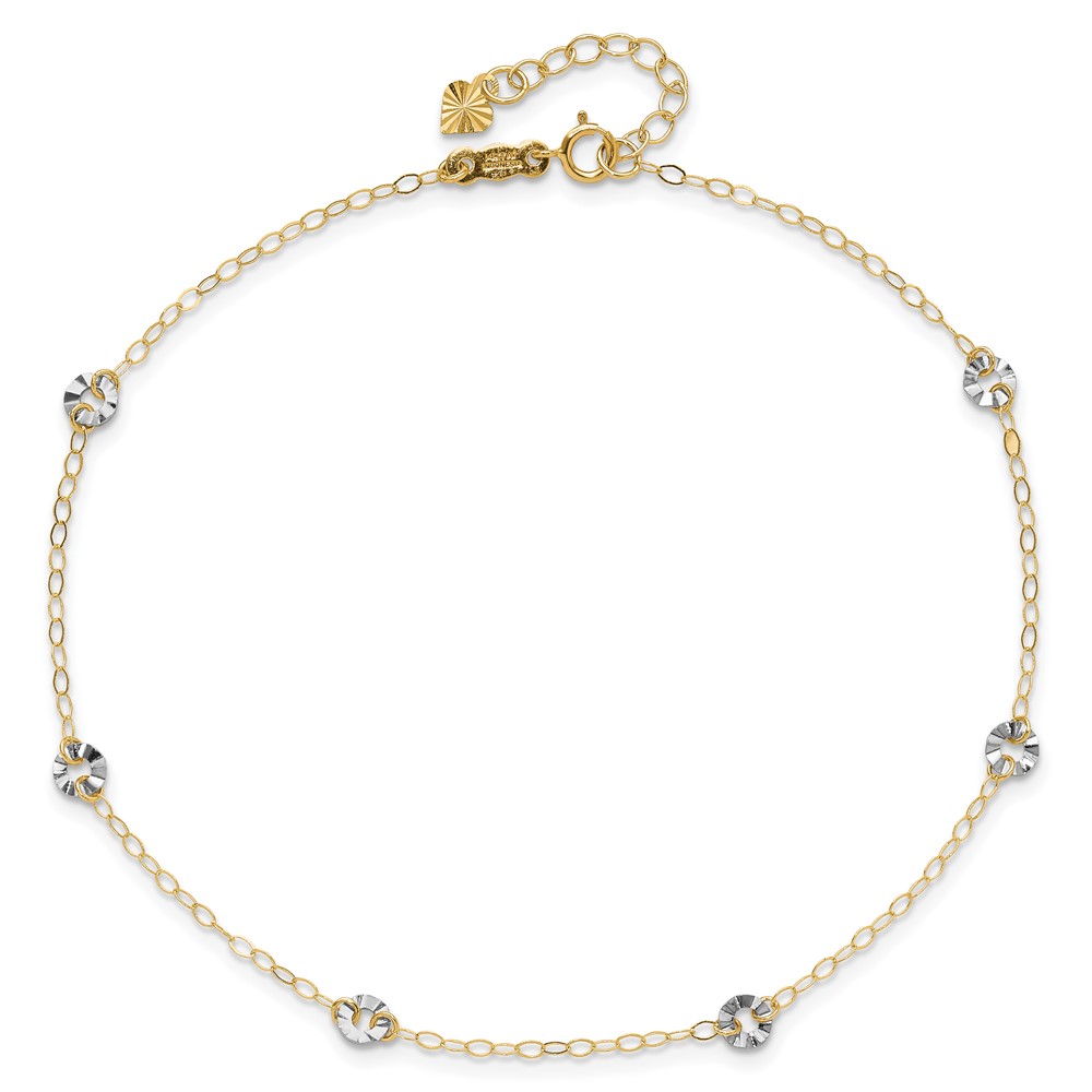 14K Two-tone Chain and Wavy Circles 6-Station Plus Extender – Total Anklet