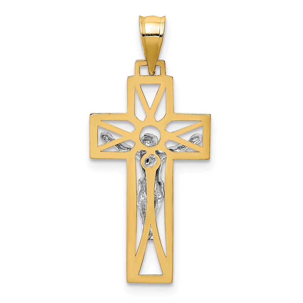 14K Two-tone INRI Fleur de Lis Crucifix Charm