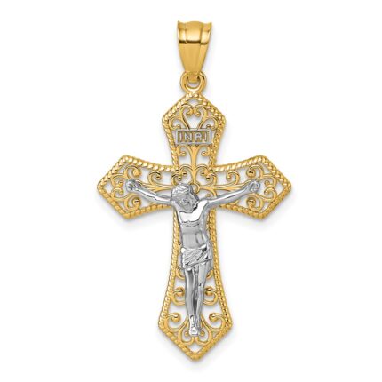 14K Two-tone Crucifix Pendant