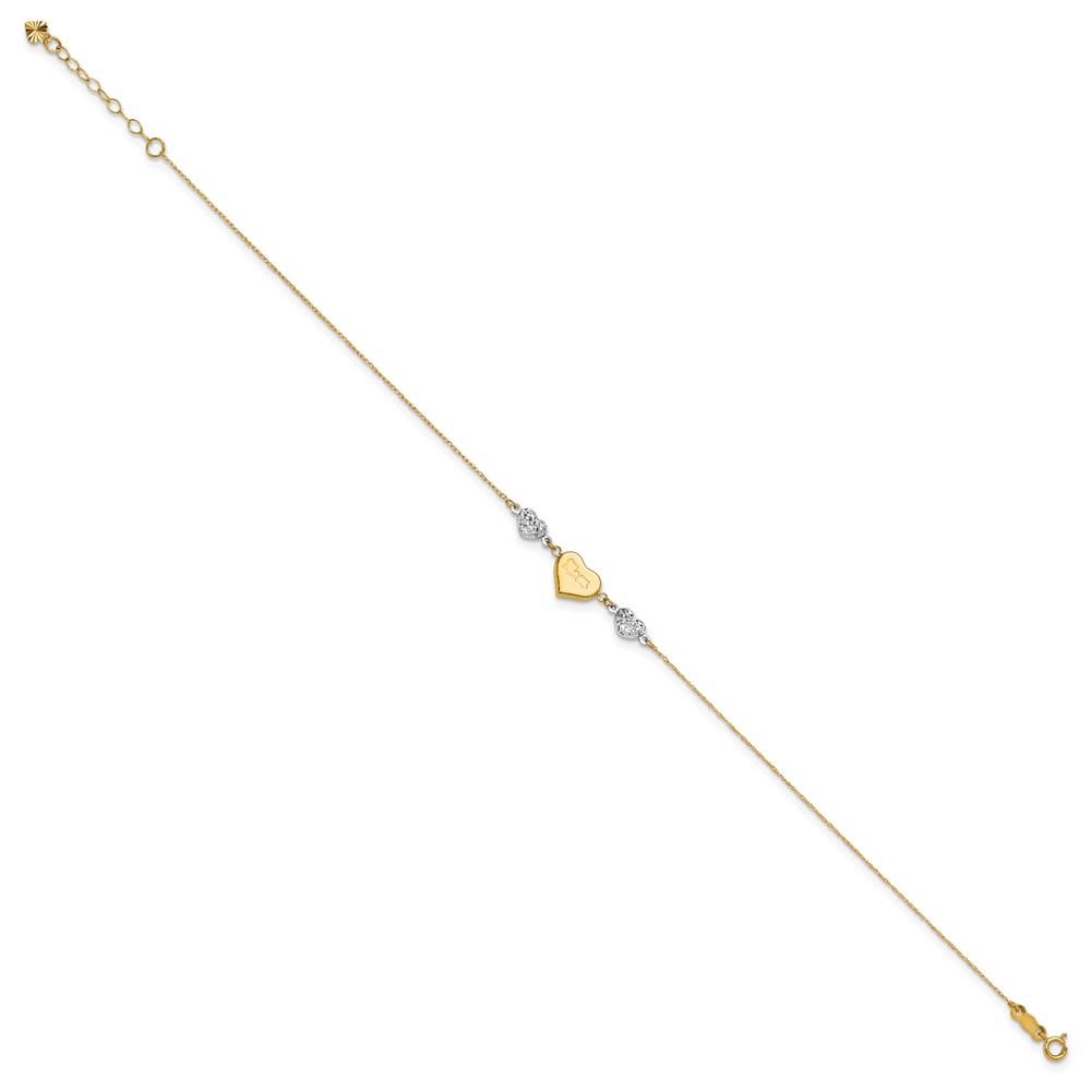 14K Two-tone Diamond-cut and MOM Puffed Heart Plus Extender – Total Anklet